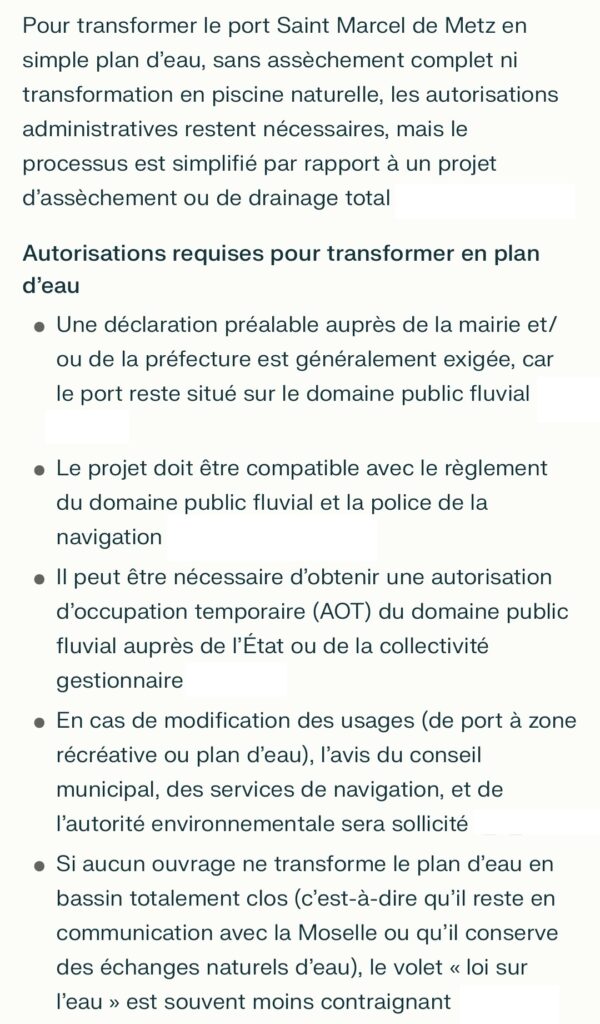 Comment transformer le Port Saint-Marcel, mouillé par la Moselle, en plan d’eau privé ( poissons, nénuphars, roseaux, oiseaux, bancs) ?